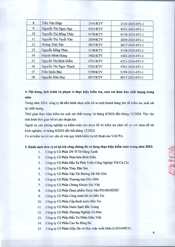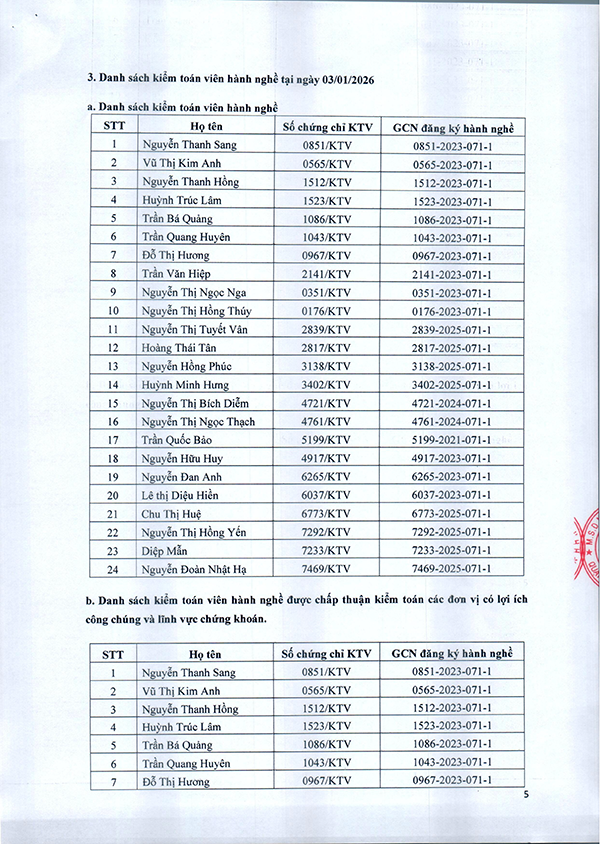Danh sách kiểm toán viên hành nghề và kiểm toán viên được chấp thuận kiểm toán đơn vị có lợi ích công chúng;